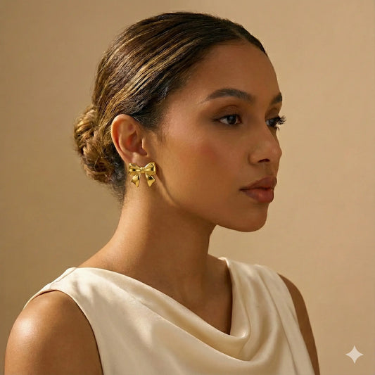 Golden Bow Earrings with Pleated Ribbon Style & Luxe Shine
