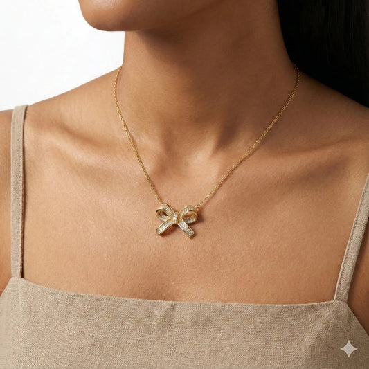 Glamour Bow Necklace Adorned with Glittering Stones